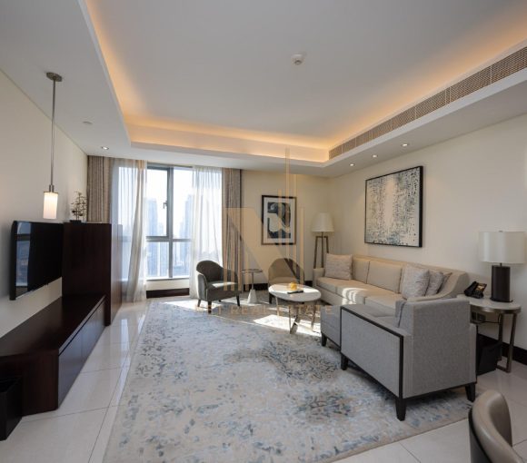 The Address Downtown Hotel, also known as Lake Hotel, was Emaar’s first Address brand hospitality project featuring 196 hotel rooms and 626 hotel serviced apartments in the prestigious Downtown Dubai neighborhood. It is highly acclaimed for its architecture, brand and quality. This 63-storey hotel is the 22nd tallest building in Dubai, offering studios, 1, 2 and 4-bedroom apartment units. Some serviced apartments have a wonderful view of the Burj Khalifa, The Dubai Fountain and the Downtown district.